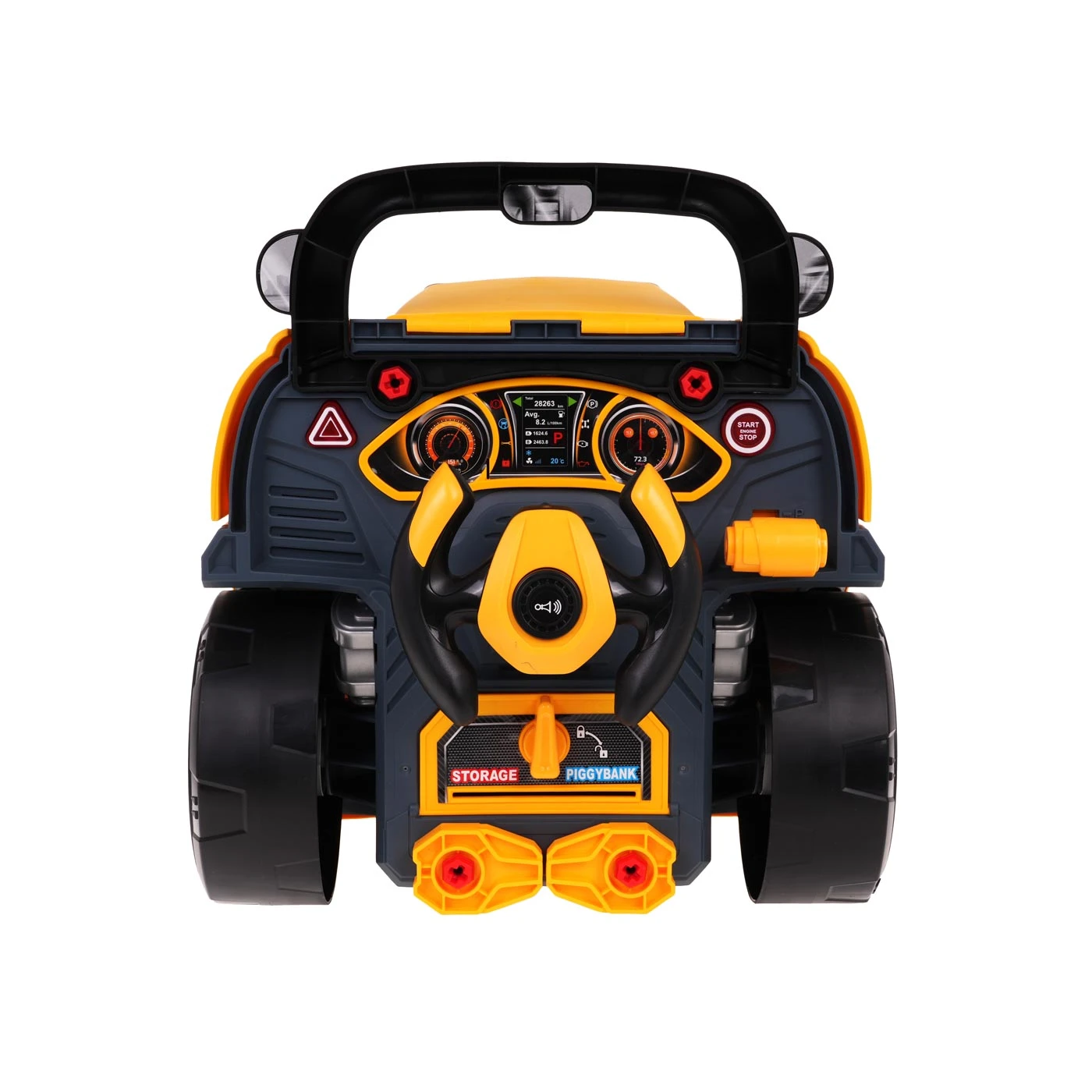 Sõiduki põhipaneel on tõeline meelelahutus- ja suhtlustsoon. Paremale ja vasakule pöörav rool annab autentse sõidukogemuse, helisignaal aga lisab lõbusust ja realistlikkust. Valgus- ja heliefektidega hädaabinupp võimaldab teeselda kriisiolukorda, mille laps saab oma kujutluses uuesti luua. Start-stopp-nupp aktiveerib realistlikud sõiduki helid, käiguvalija aga võimaldab simuleerida suuna muutmist.