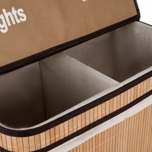 Elegantne 100-liitrine bambusest pesukorv kahe sektsiooniga aitab pesu mugavalt sorteerida ja hoiustada. Kaheosaline sisemus sobib näiteks heleda ja tumeda pesu eraldamiseks, eemaldatav kangast sisetükk muudab kasutamise praktiliseks ning stabiilne konstruktsioon tagab kindla püsimise ka täidetuna. Naturaalne bambusviimistlus sobib hästi vannituppa, pesuruumi või magamistuppa.