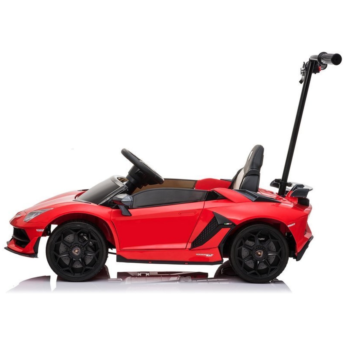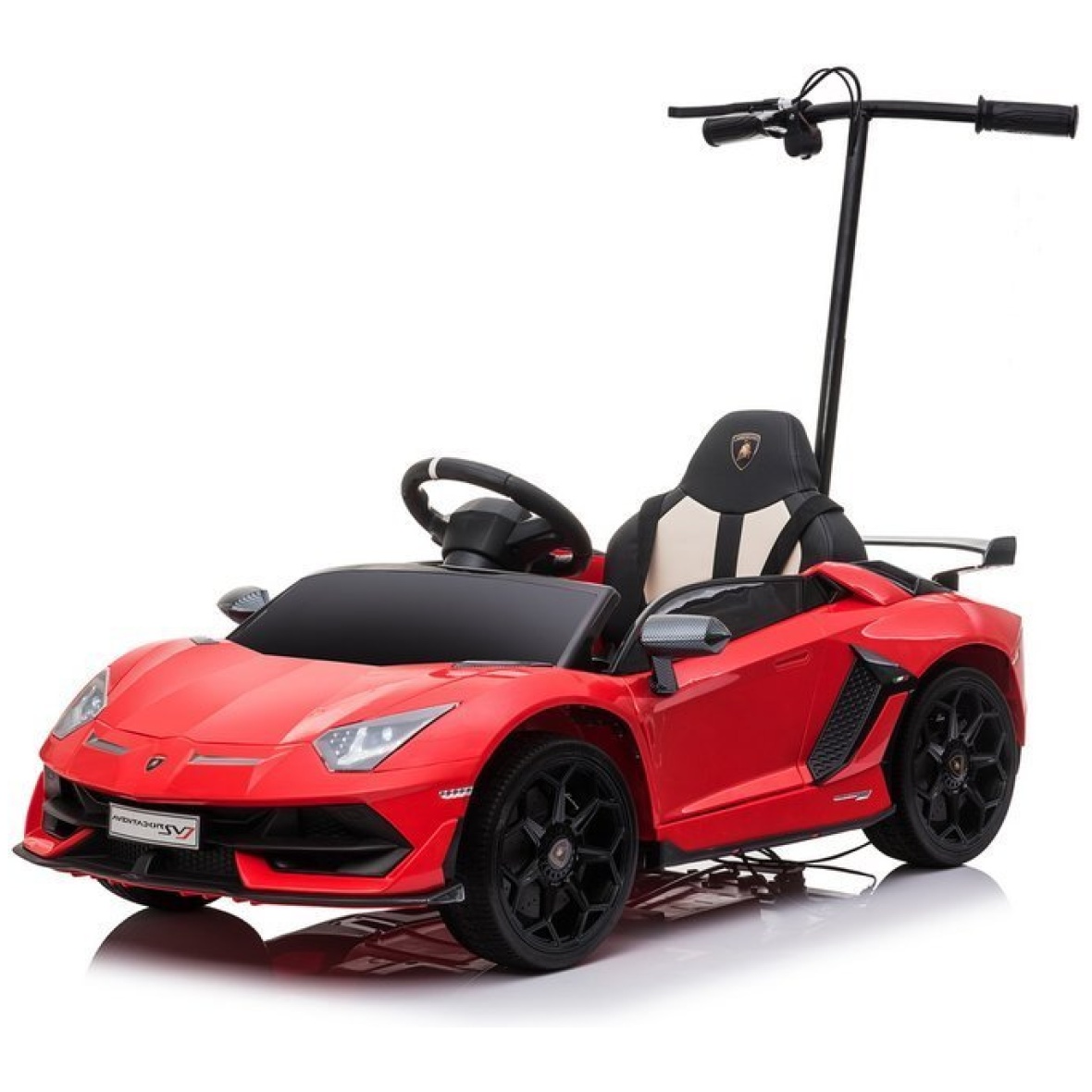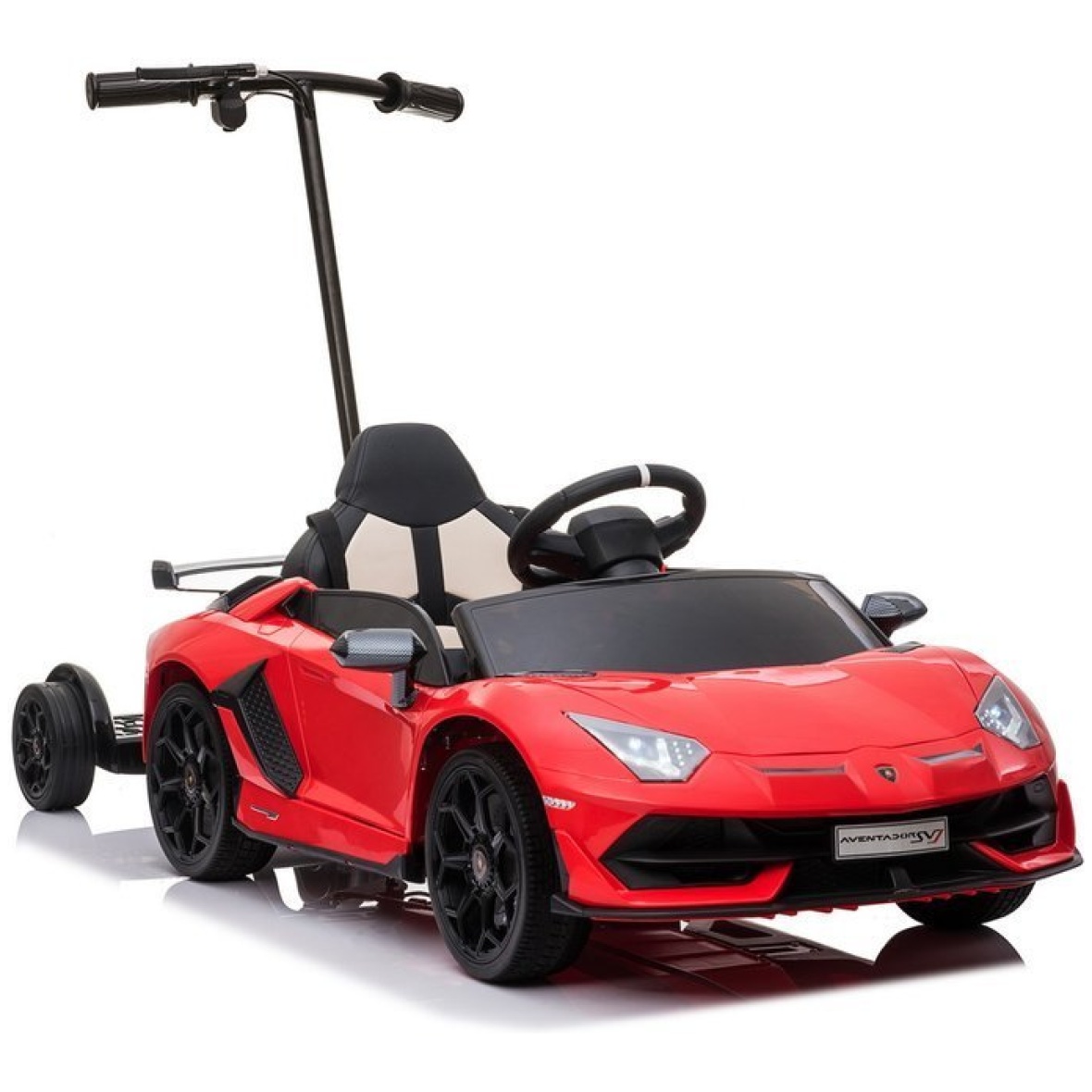 Lamborghini Aventador on fantastilise auto miniatuurne versioon, sellel on Lamborghini autotööstuse originaallitsents. Tänu sellele ehitati sõiduki konstruktsioon ainult kõrgeima kvaliteediga komponentidest, kaunistades seda lisaks iseloomuliku äratuntava logoga. Lamborghini lasteauto ehitusel köidab pilku eeskätt uudne uste ülespoole avamine. Auto sportlik disain duetis õrnalt kaldu katusejoonega eristab Lamborghini Aventadori mudelit teistest eksklusiivsetest autodest. Mänguauto külge kinnitatud platvorm võimaldab vanemal lapsega reisides sõidukit juhtida. Platvormi maksimaalne koormus on 80 kg.