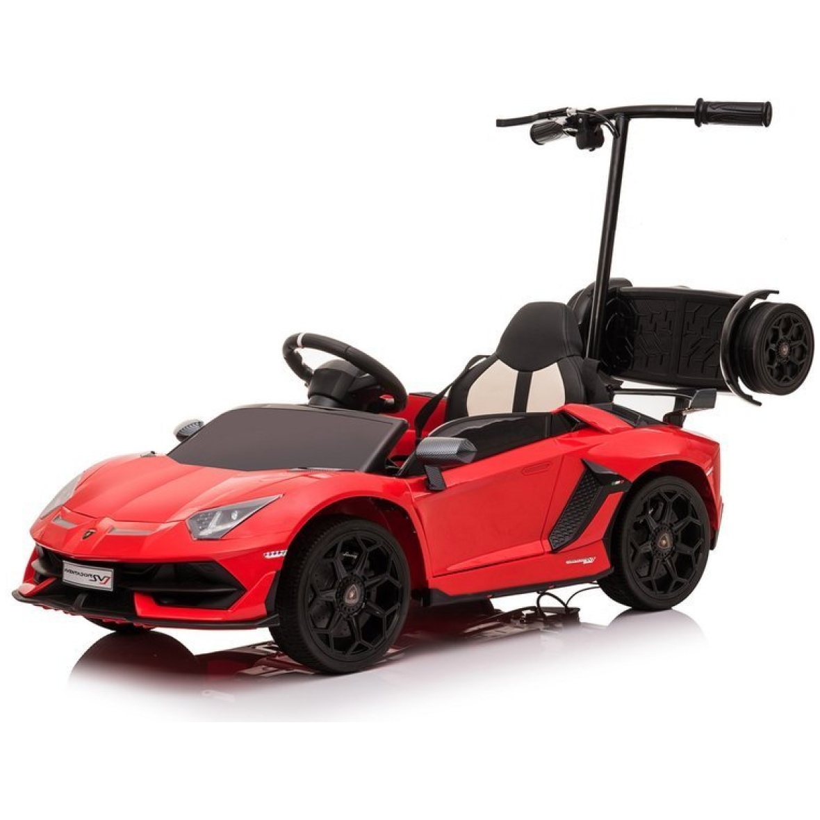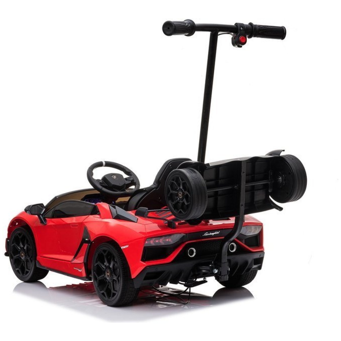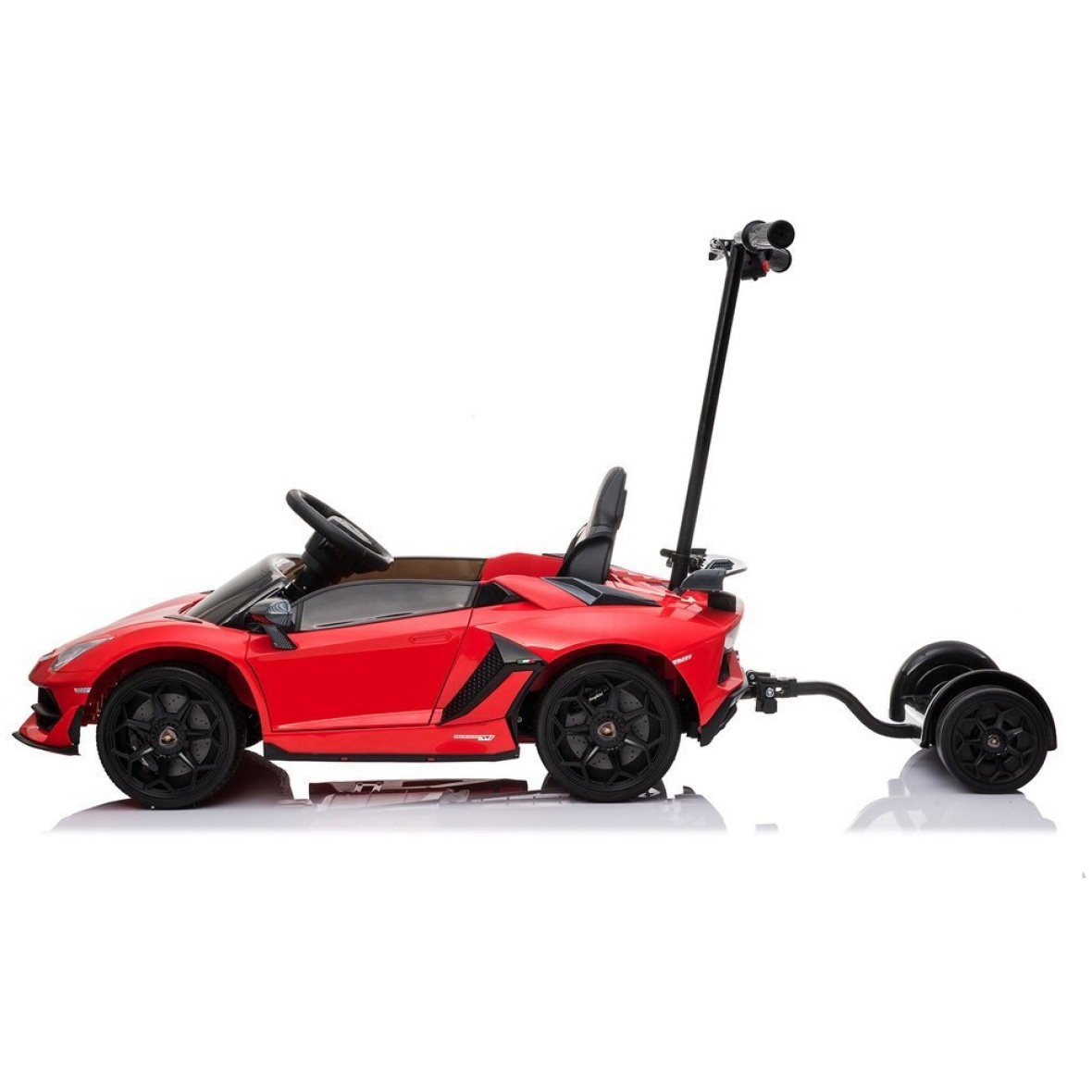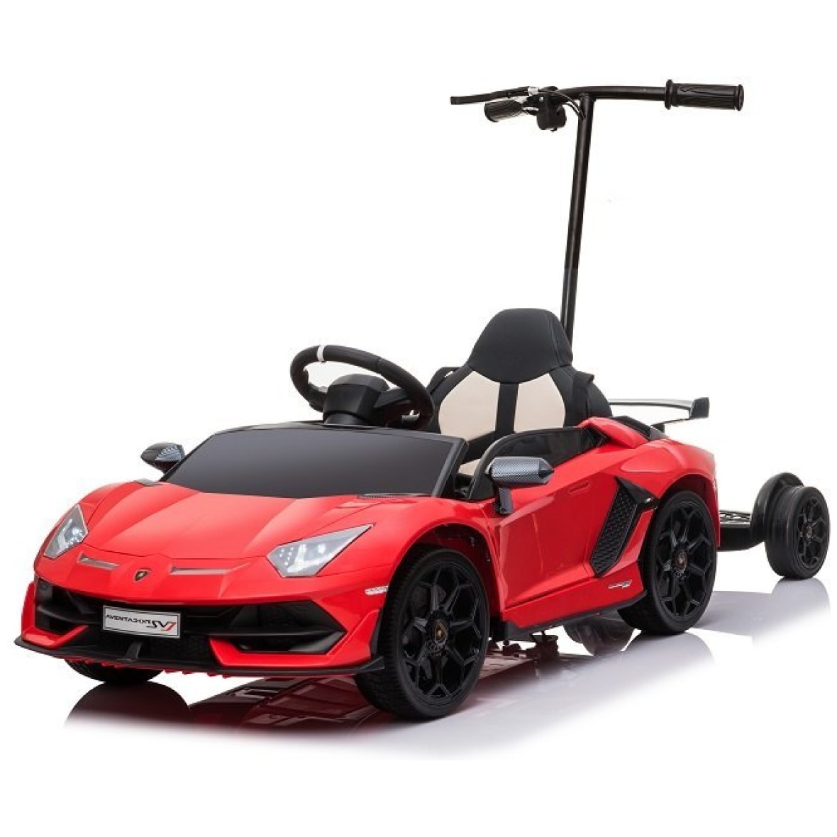 Lamborghini Aventador on fantastilise auto miniatuurne versioon, sellel on Lamborghini autotööstuse originaallitsents. Tänu sellele ehitati sõiduki konstruktsioon ainult kõrgeima kvaliteediga komponentidest, kaunistades seda lisaks iseloomuliku äratuntava logoga. Lamborghini lasteauto ehitusel köidab pilku eeskätt uudne uste ülespoole avamine. Auto sportlik disain duetis õrnalt kaldu katusejoonega eristab Lamborghini Aventadori mudelit teistest eksklusiivsetest autodest. Mänguauto külge kinnitatud platvorm võimaldab vanemal lapsega reisides sõidukit juhtida. Platvormi maksimaalne koormus on 80 kg.