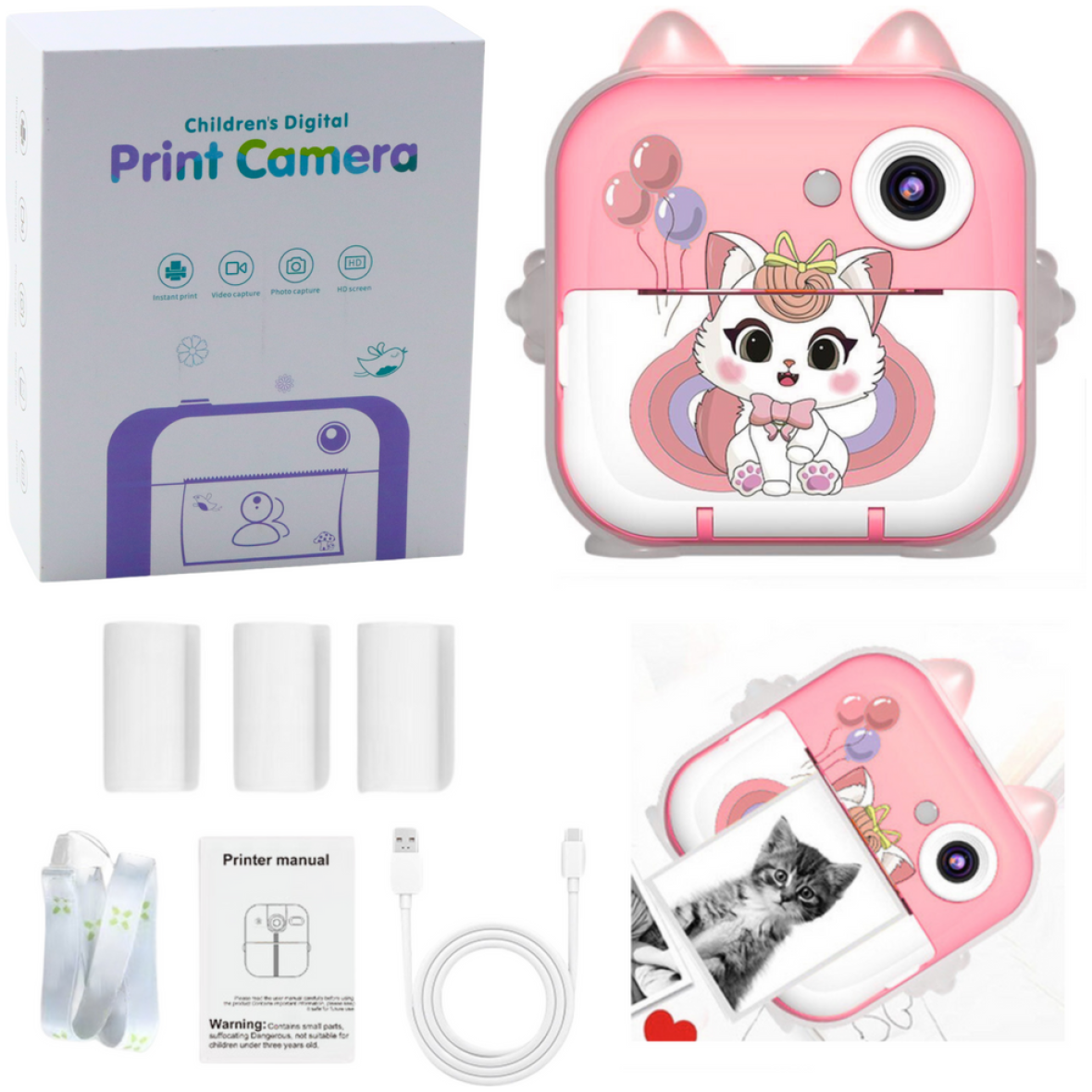 Lastele mõeldud kiirpildikaamera on 4-ühes seade, mis ühendab endas kaamera, videokaamera, mini-termoprinteri ja sisseehitatud mängude funktsioonid. Tänu kaasaegsele tehnoloogiale võimaldab see jäädvustada kauneimaid hetki, salvestada videoid ja printida fotosid koheselt – seda kõike ilma tindita. See on ideaalne lahendus lastele, kes armastavad fotograafiat ja loomingulist mängu, aga ka vanematele, kes otsivad praktilist ja harivat vidinat.