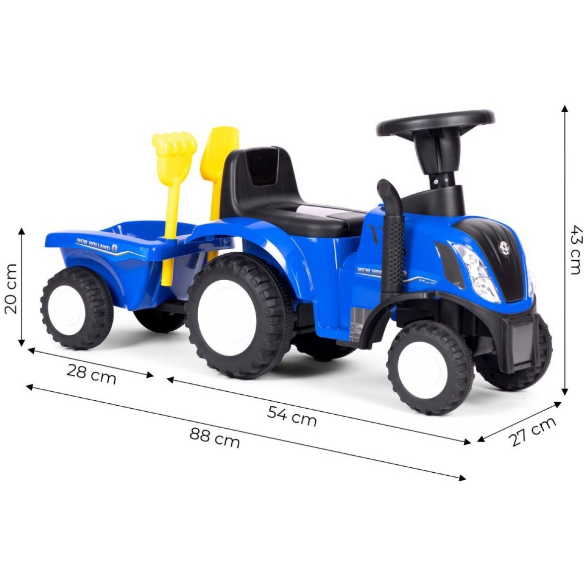 Haagisega traktor New Holland on ideaalne mänguasi üle 12 kuu vanustele lastele. See on valmistatud vastupidavast plastikust, mis tagab selle vastupidavuse. Traktoril on interaktiivne rool koos heli- ja mootorihäältega ning eemaldatav haagis , mis võimaldab transportida erinevaid esemeid. Komplektis on reha ja labidas, mis sobivad suurepäraselt aias mängimiseks. Lisaks on traktoril ümbermineku vastu kaitseelement, mis tagab lapse ohutuse mängimise ajal. Maksimaalne koormus on 25 kg.