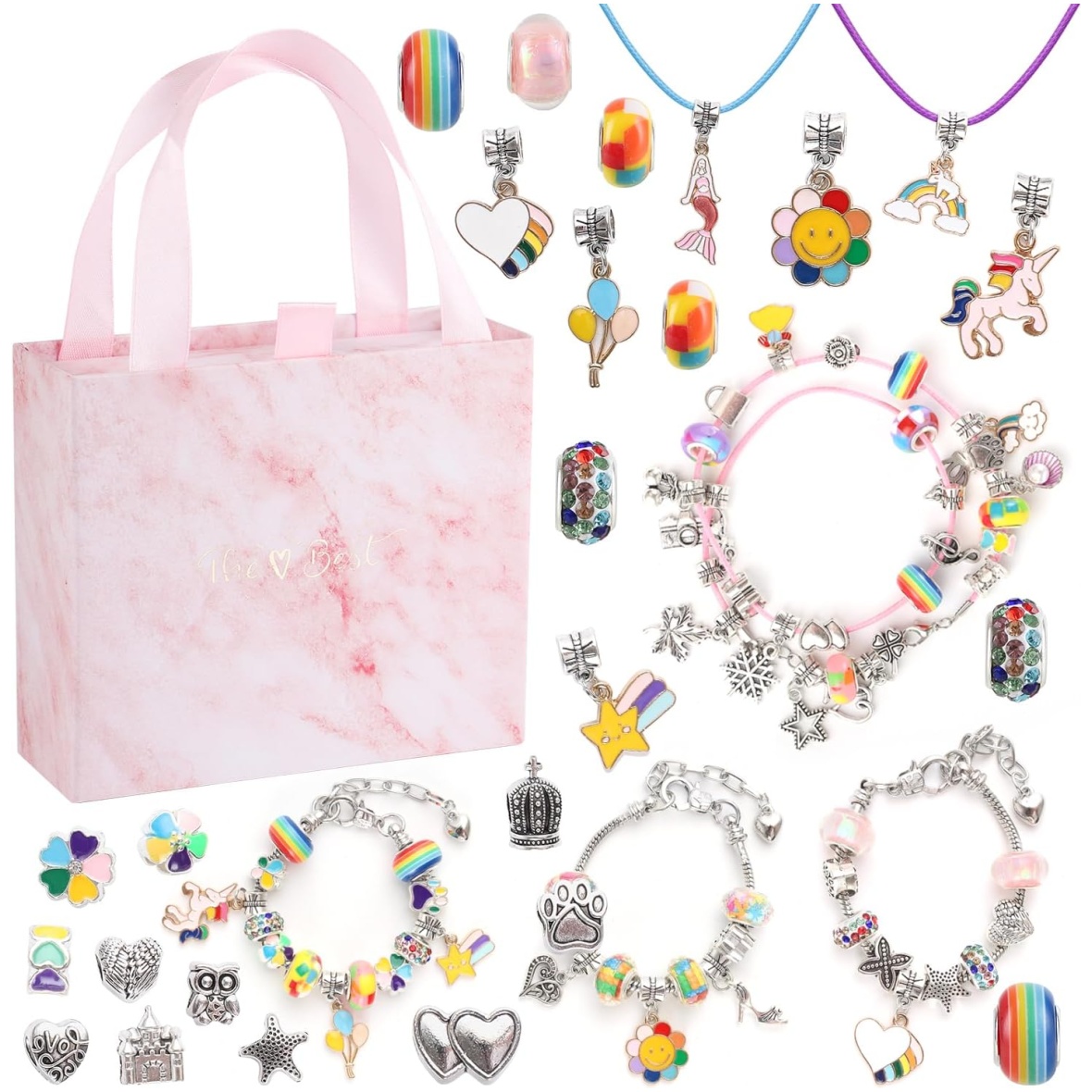 Tüdrukutele mõeldud loominguline võlukäevõrude valmistamise komplekt võimaldab lastel nautida tunde lõbusaid ja lõputuid ideid oma kaunite ehete käevõrude loomiseks. Laps saab arendada oma kujutlusvõimet ja loovust. Tüdrukud saavad luua DIY käevõrude mis tahes kombinatsioone ja konfiguratsioone.