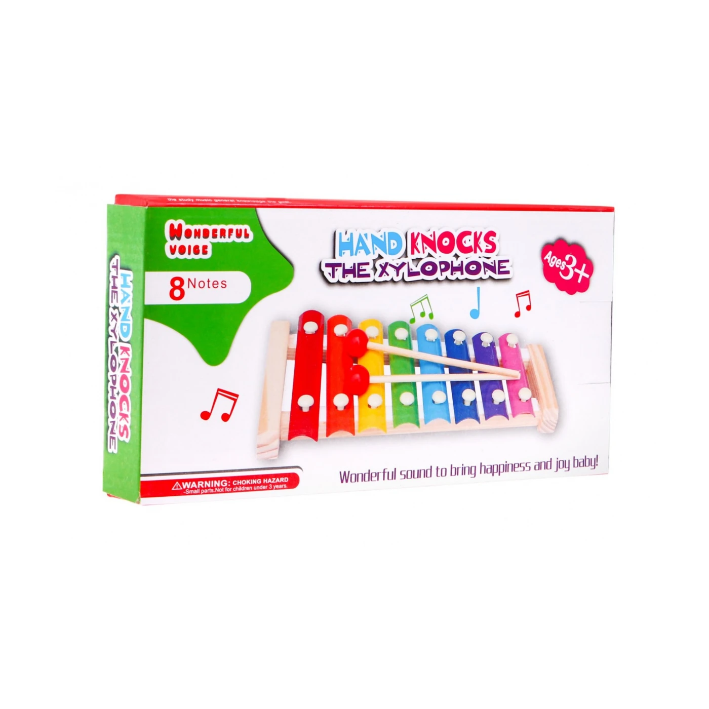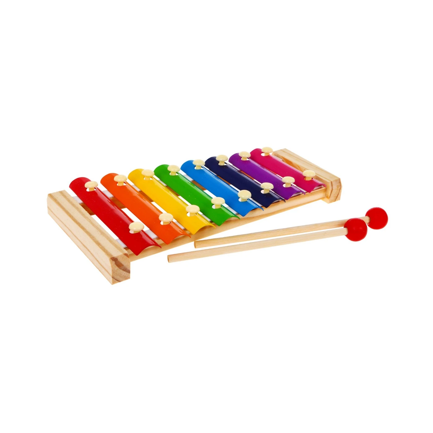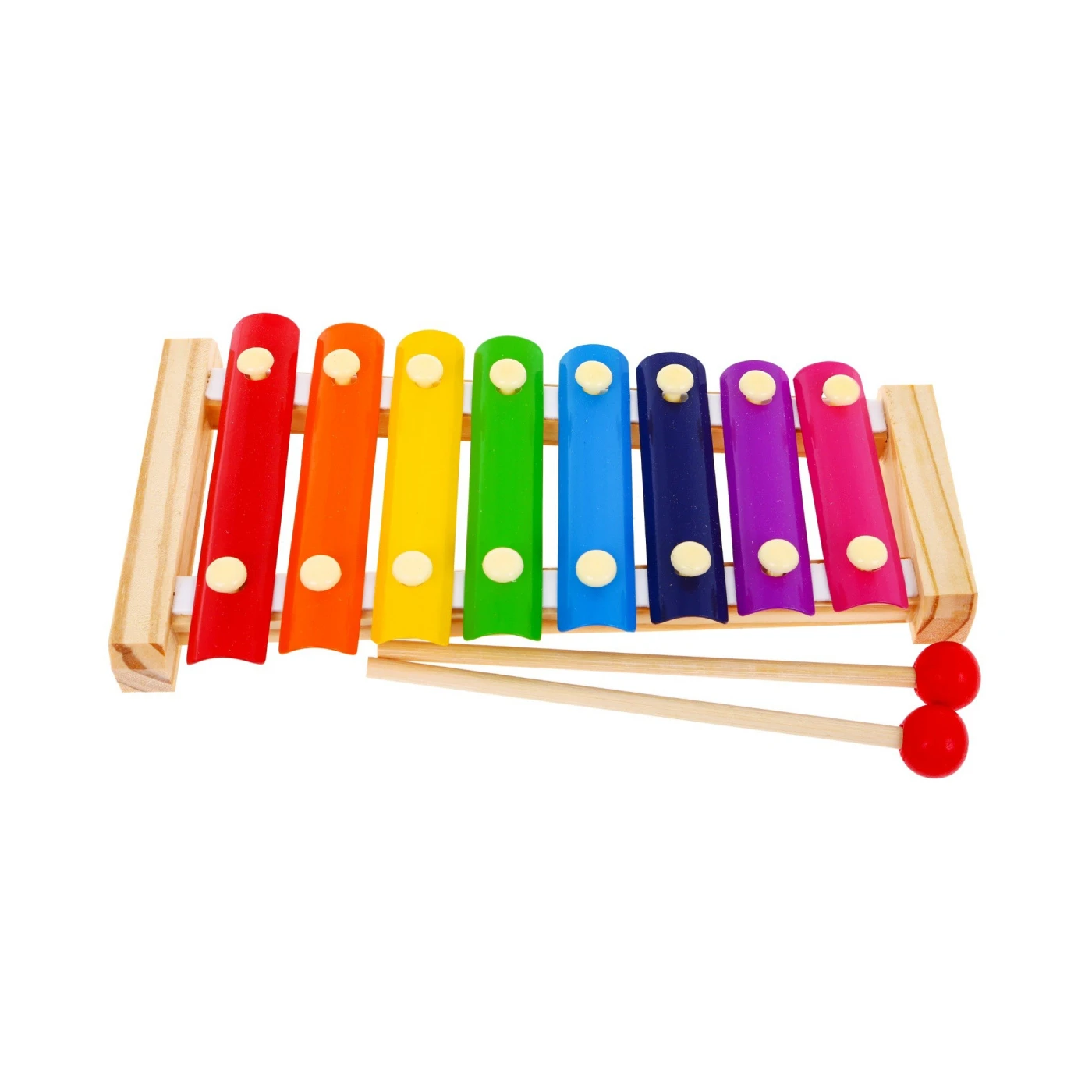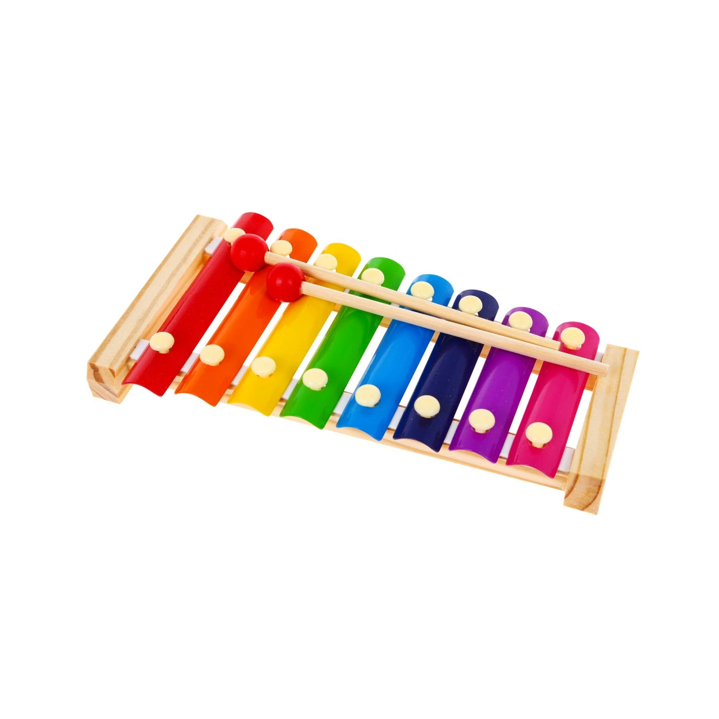 Ksülofonil on 8 tooni, mida laps lööb pulkadega, tänu millele toodab pill meeldivat heli, stimuleerides kuulmist.