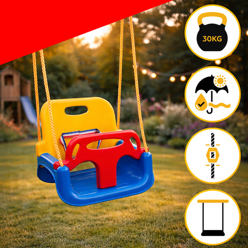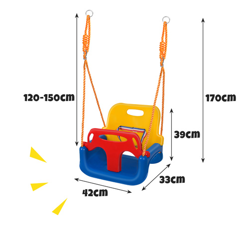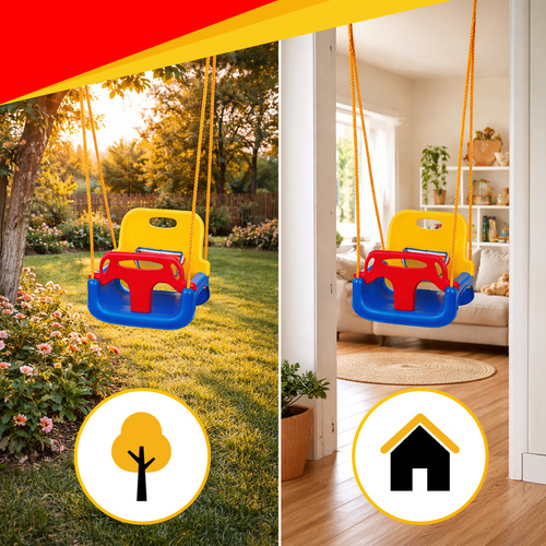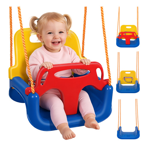 Praktiline ja turvaline 3-ühes kiik kasvab koos lapsega ning pakub rõõmu mitmeks hooajaks. Esi- ja tagumisi turvasiine saab lapse kasvades eemaldada, muutes kiige sobivaks erinevatele vanustele ja vajadustele. Kiik sobib kasutamiseks nii toas kui õues – aias, terrassil või mängunurgas.