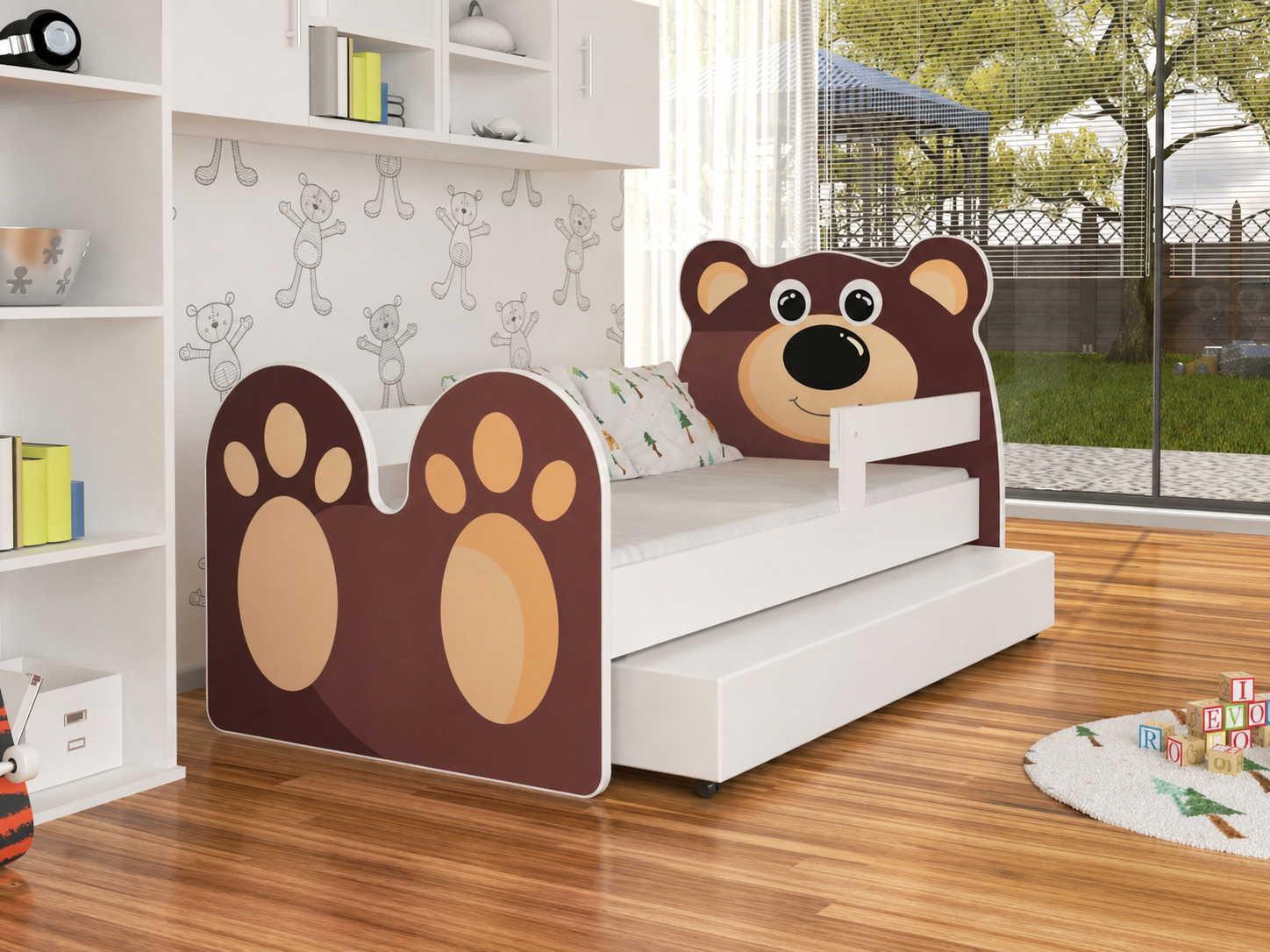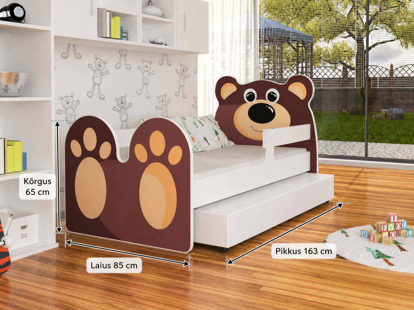 Komplekti kuulub: voodi, voodisahtel, voodipõhi, turvapiirded ja poroloonmadrats.