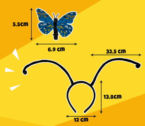 Täielik komplekt – tiivad, silmamask, peapael antennidega ja 2 juuksenõela