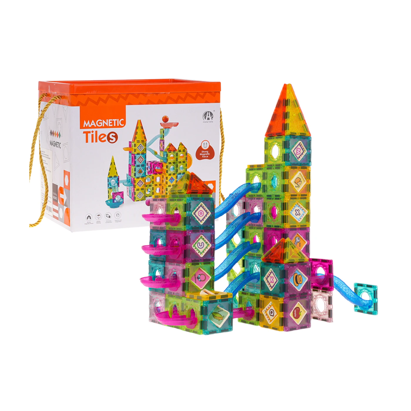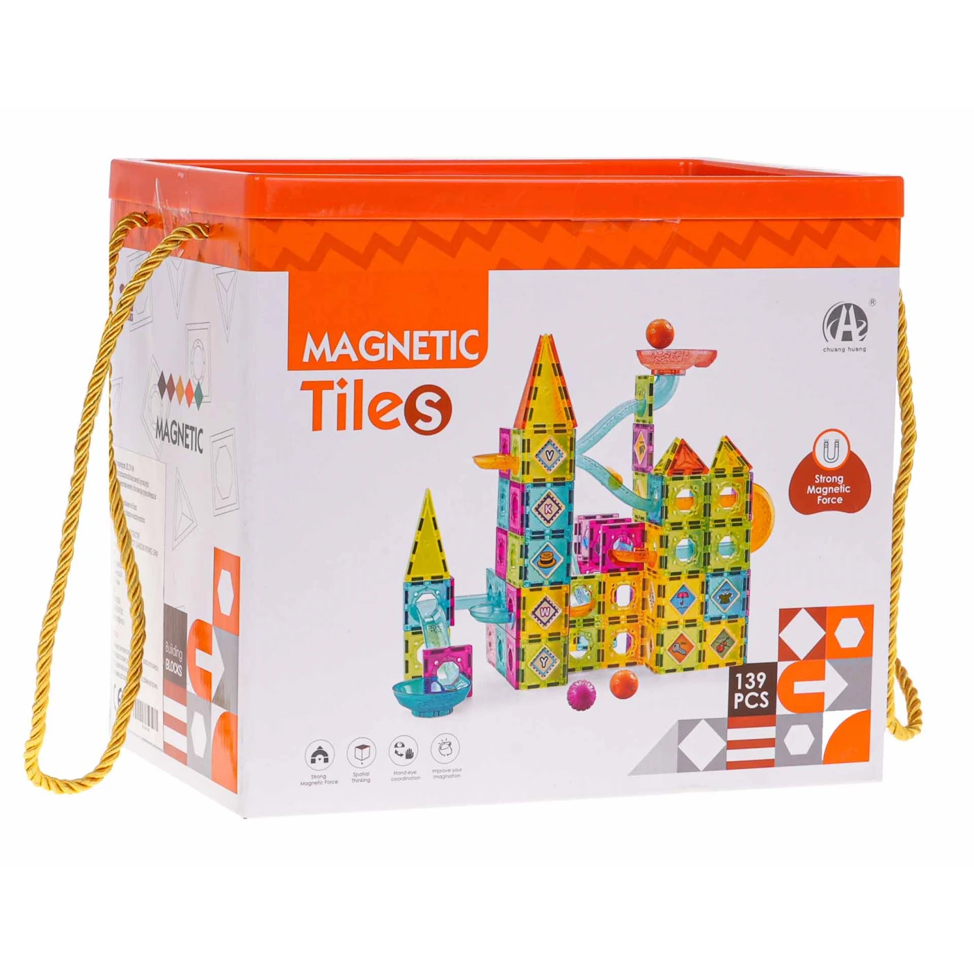 Värviliste magnetklotside komplekt lastele vanuses 3 aastat ja vanemad. Komplekt koosneb 139 osast ja võimaldab teil ehitada raja mis tahes konfiguratsioonis. Klotsid on valmistatud kõrgeima kvaliteediga plastist, on siledad ja hoolikalt valmistatud. Need on ühendatud sisseehitatud magnetite abil. Magnetid püsivad väga hästi koos, tagades konstruktsiooni stabiilsuse. Komplekt sisaldab piltidega juhiseid näidisradade kokkupanekuks. Klotsikarbil on mugavad kandenöörid ja kaanel on kuju sorteerija.