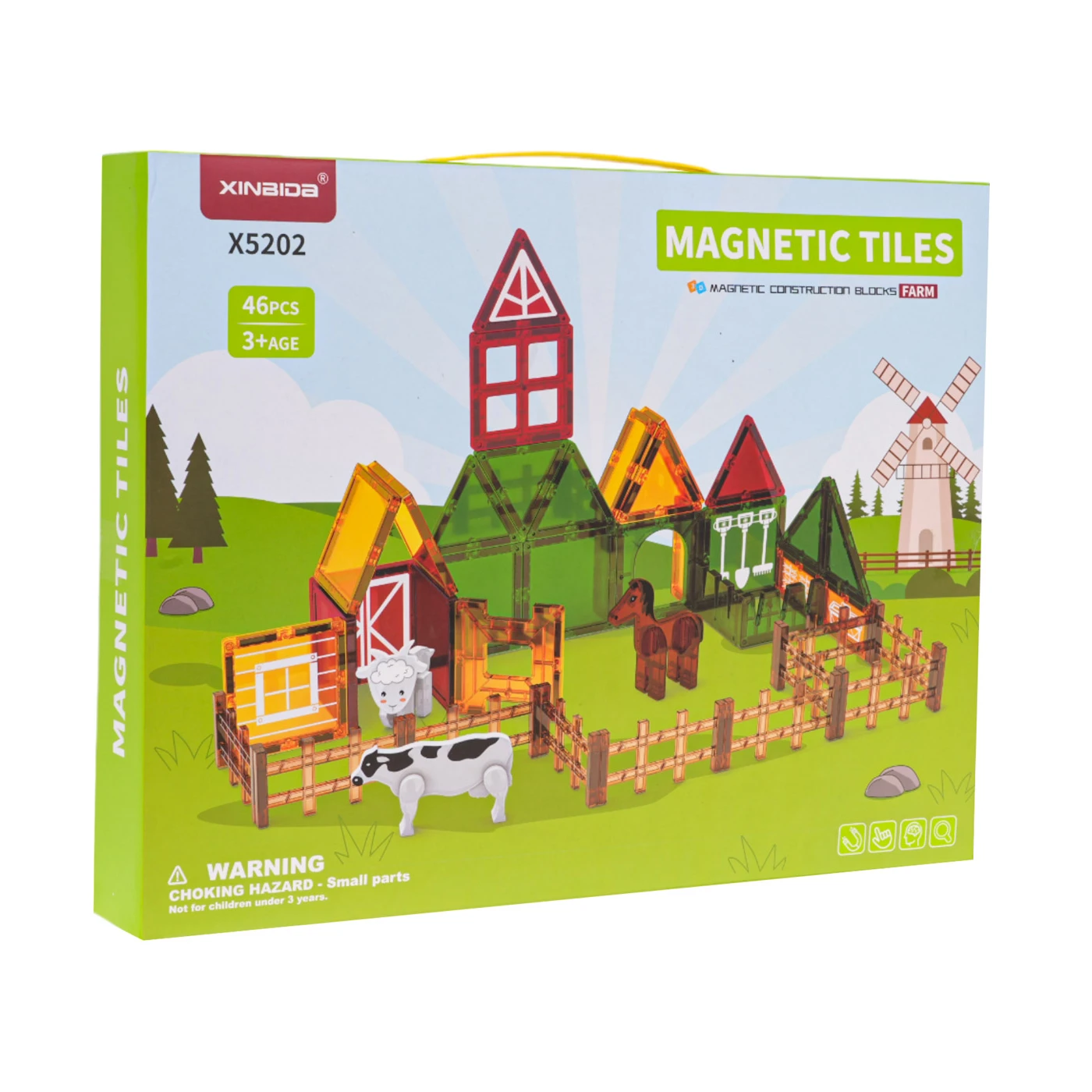 Värvilised magnetklotsid sarjast “Farm” lastele vanuses 3 aastat ja vanemad. Komplekt koosneb 42 erineva värvi ja kujuga klotsist. Lisaks klotsidele on seal ka lamba-, hobuse- ja lehmafiguur. Klotsidest saab ehitada talu; samm-sammult juhised näitavad, kuidas seda teha, aga saab ehitada ka oma talu. Klotsidega mängimine stimuleerib lapse kujutlusvõimet ja loovust, arendades käelist osavust ja keskendumisvõimet.