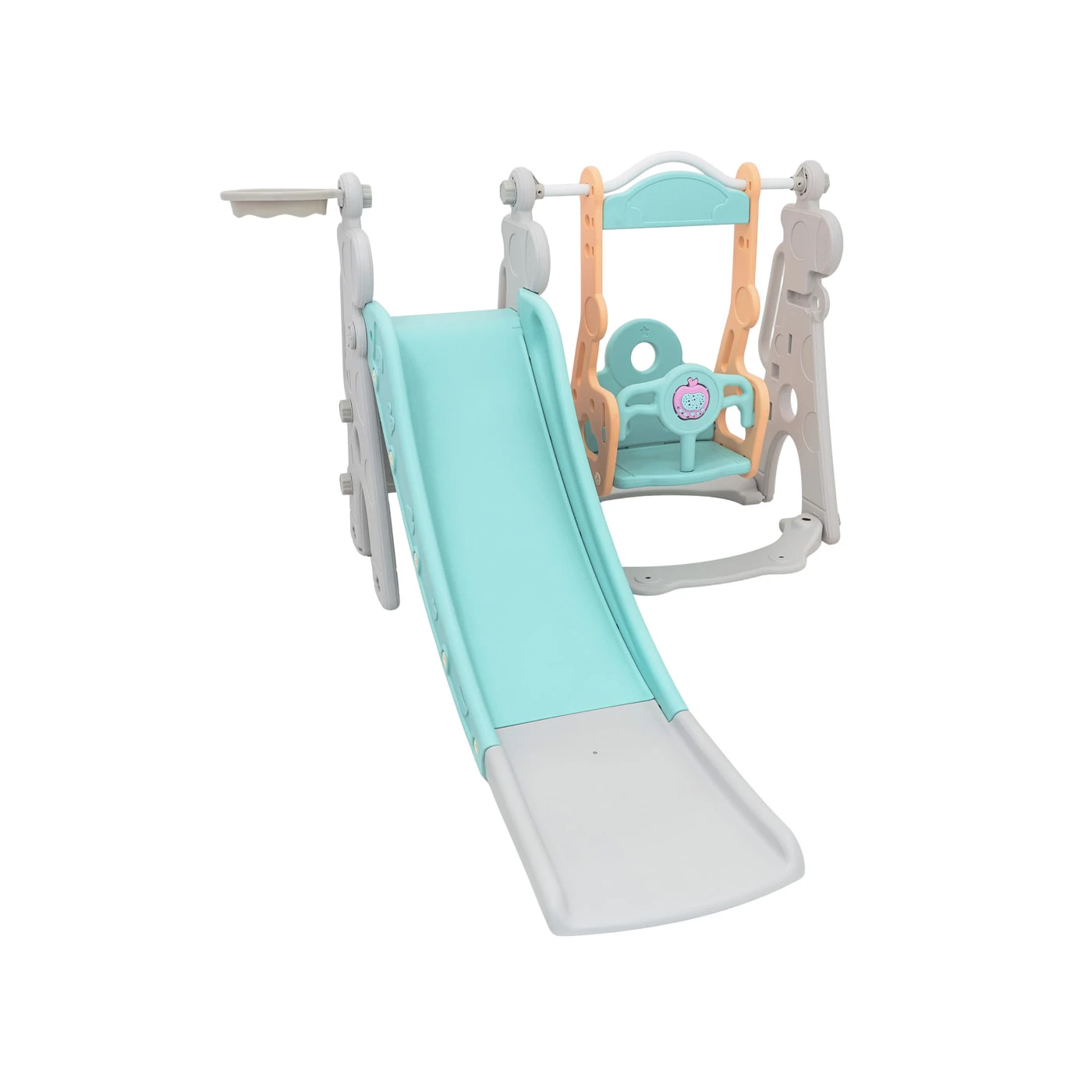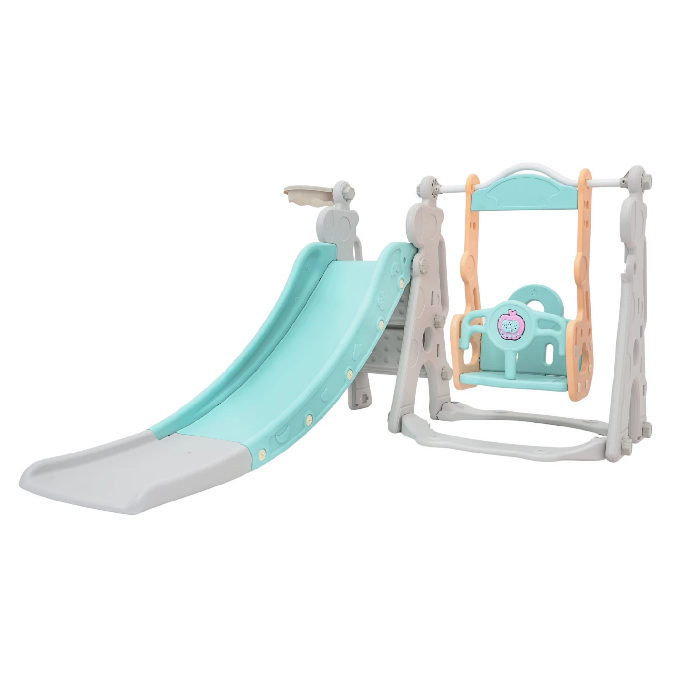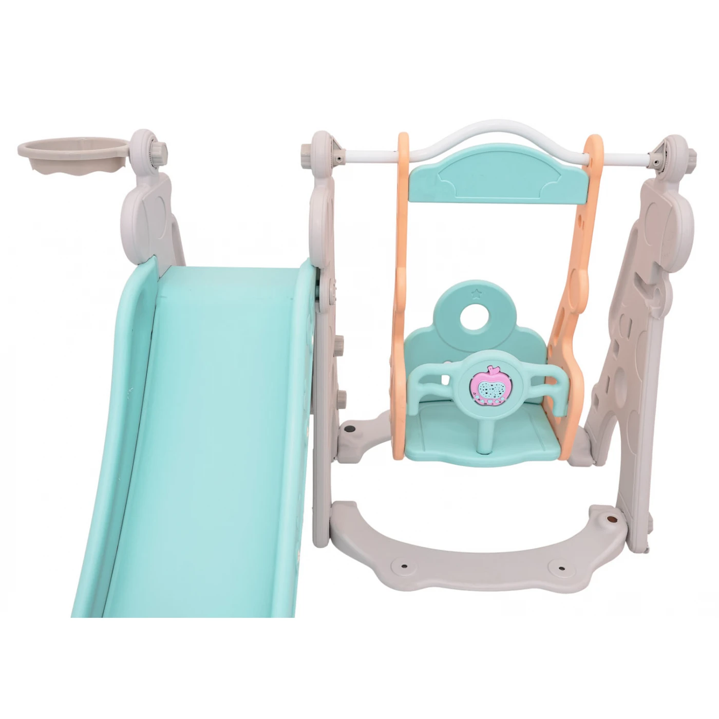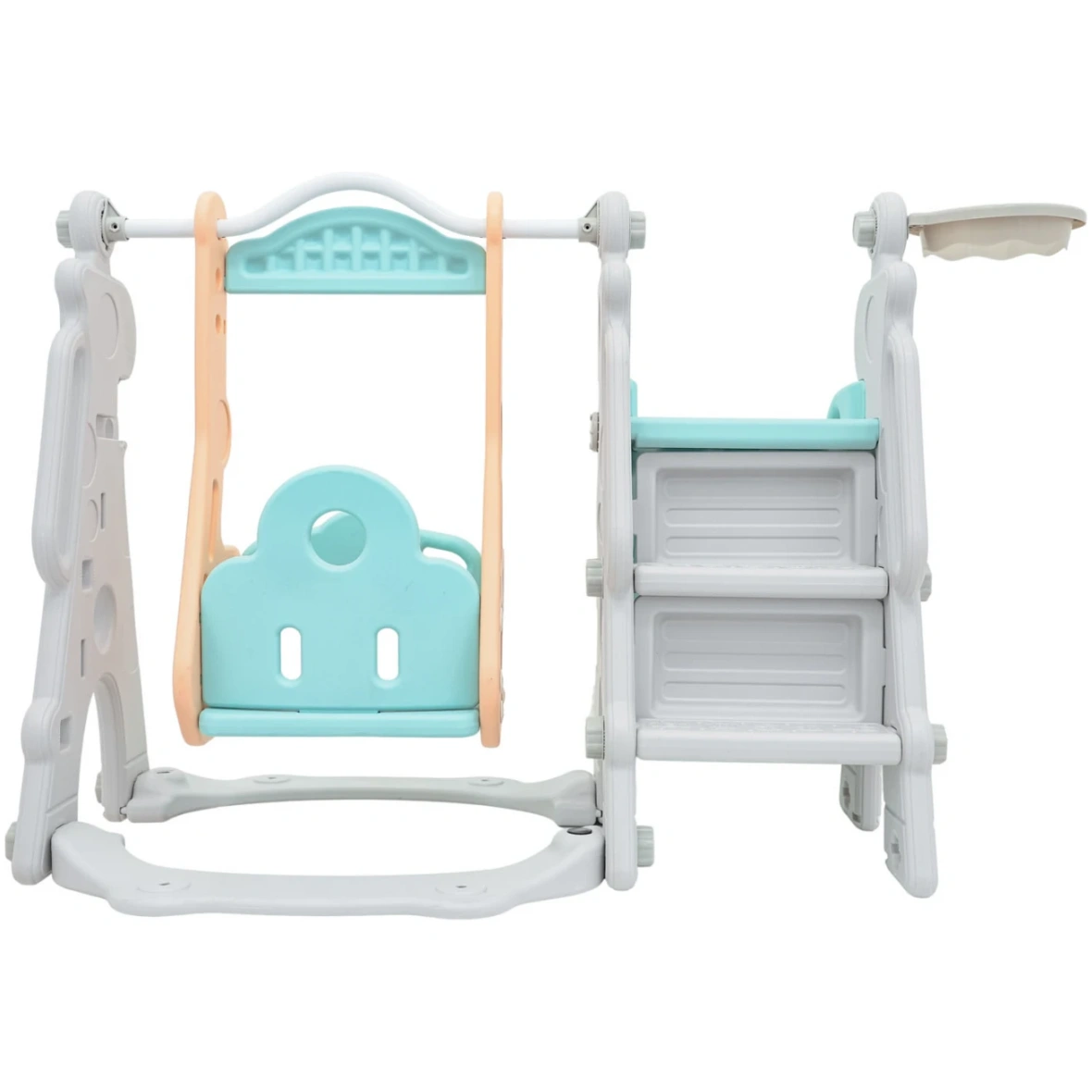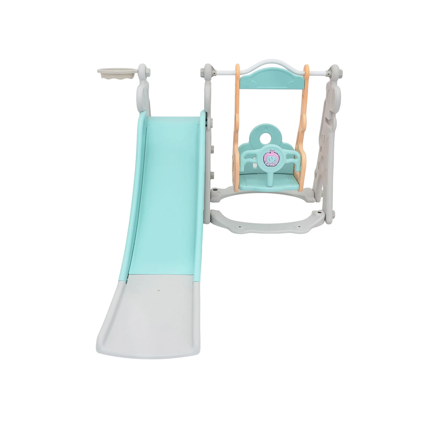 3-ühes komplekt, liumägi, kiik, korvpall lastele alates 1. eluaastast. Kõik komplekti elemendid on valmistatud kvaliteetsest HDPE materjalist, mis on paindlikum ja mehaaniliste kahjustuste suhtes vastupidavam võrreldes teistes sarnastes konstruktsioonides kasutatavate materjalidega. Suured komponendid hõlbustavad kokkupanekut. Komplekt sobib ideaalselt nii õues kui ka siseruumides kasutamiseks.