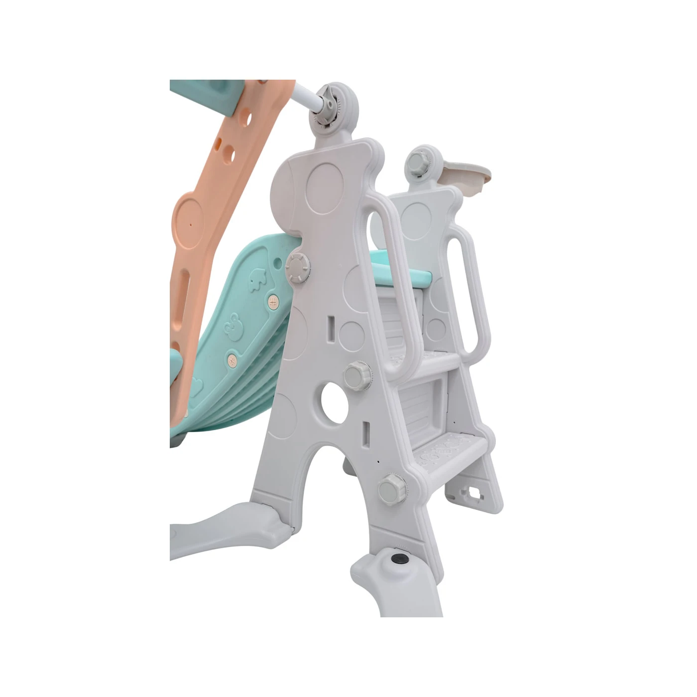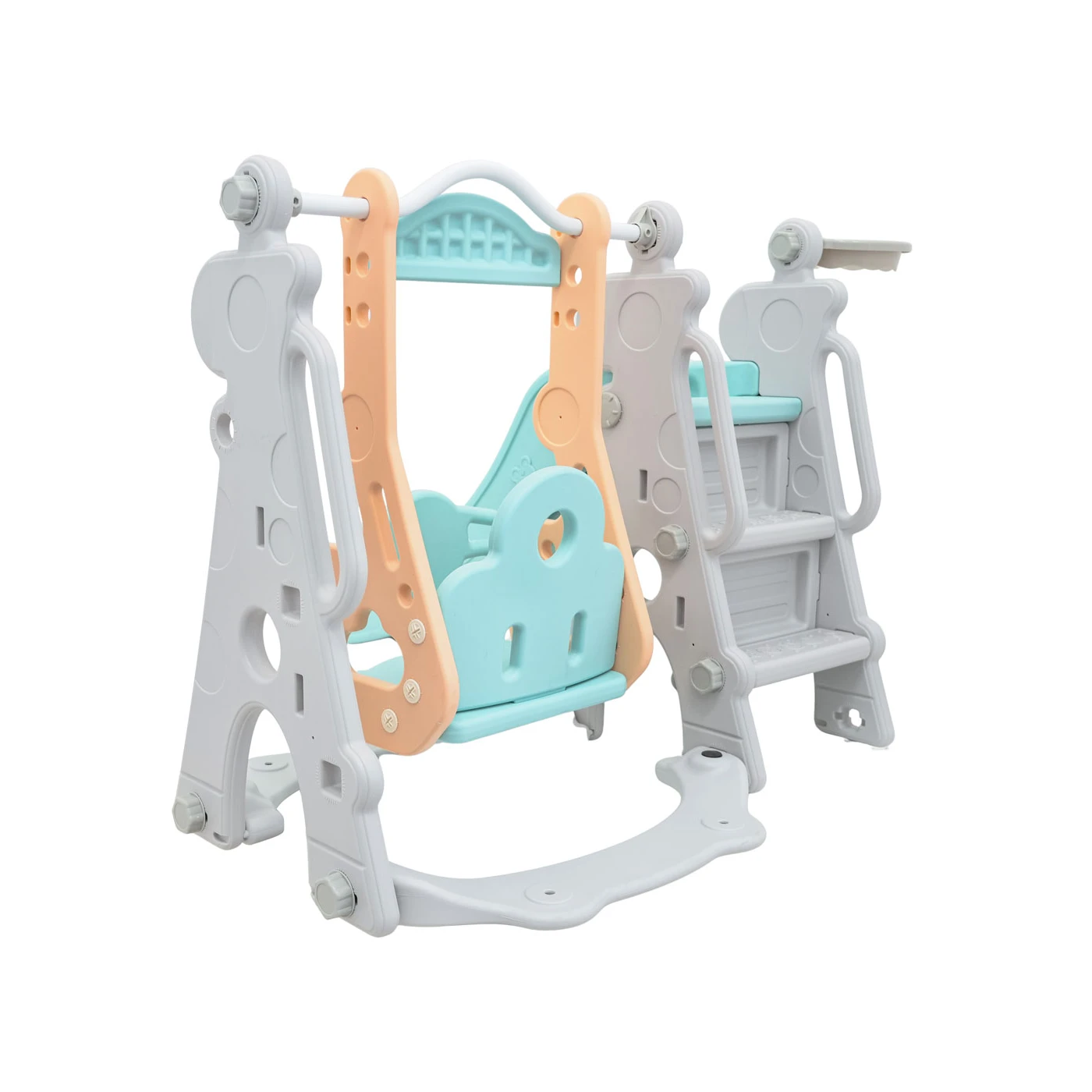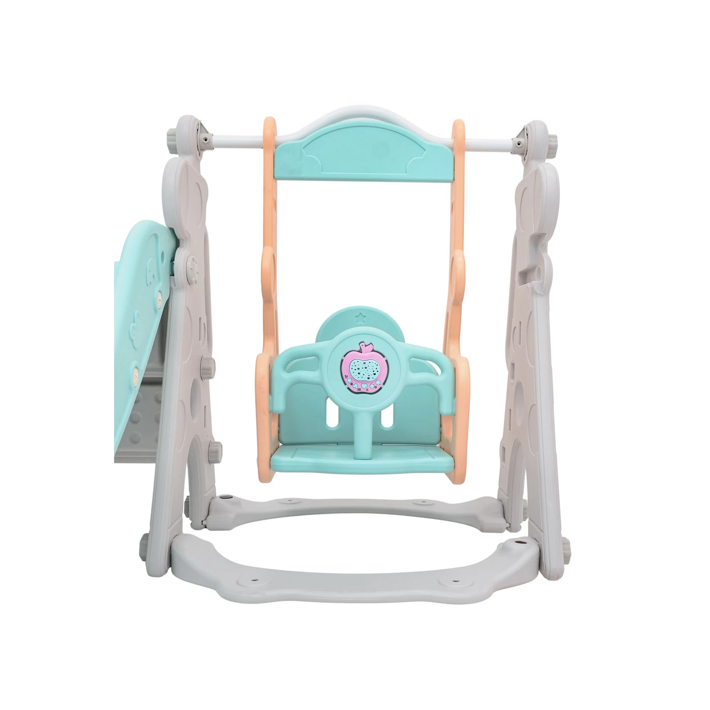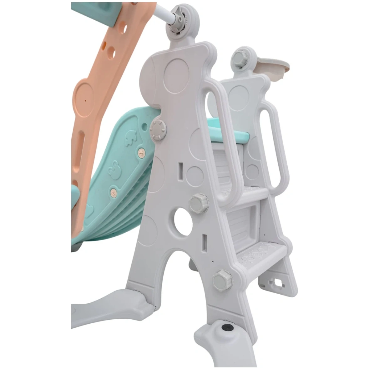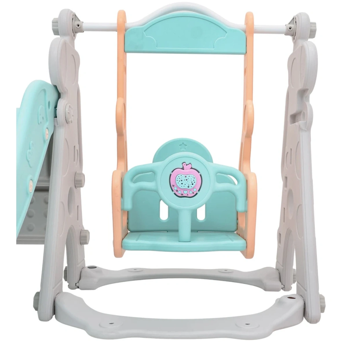 3-ühes komplekt, liumägi, kiik, korvpall lastele alates 1. eluaastast. Kõik komplekti elemendid on valmistatud kvaliteetsest HDPE materjalist, mis on paindlikum ja mehaaniliste kahjustuste suhtes vastupidavam võrreldes teistes sarnastes konstruktsioonides kasutatavate materjalidega. Suured komponendid hõlbustavad kokkupanekut. Komplekt sobib ideaalselt nii õues kui ka siseruumides kasutamiseks.