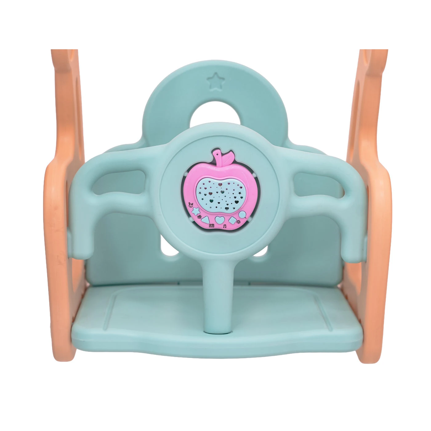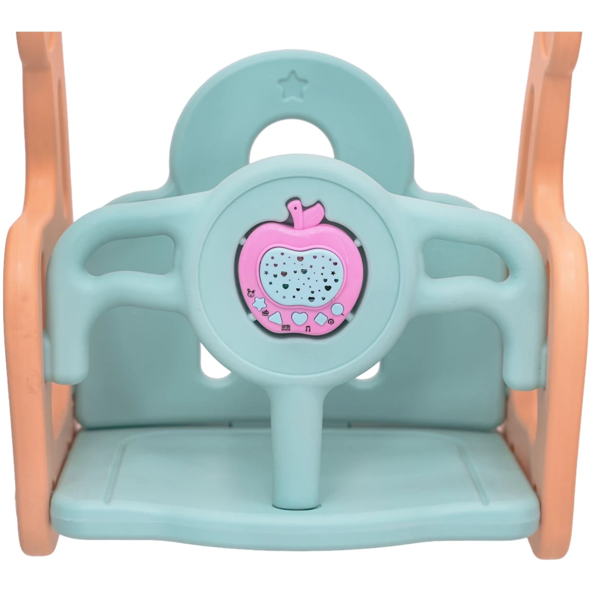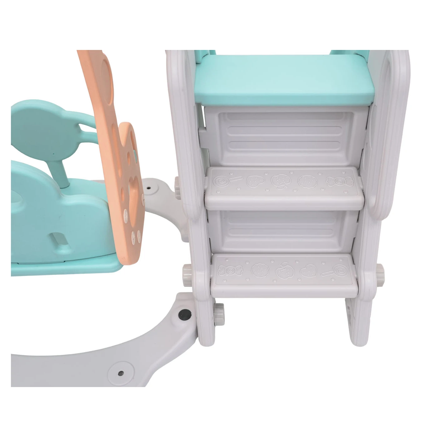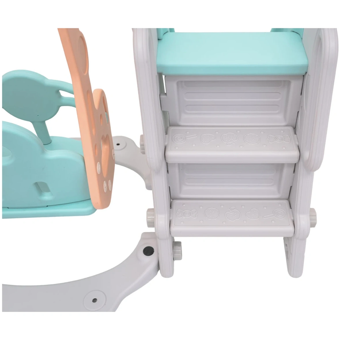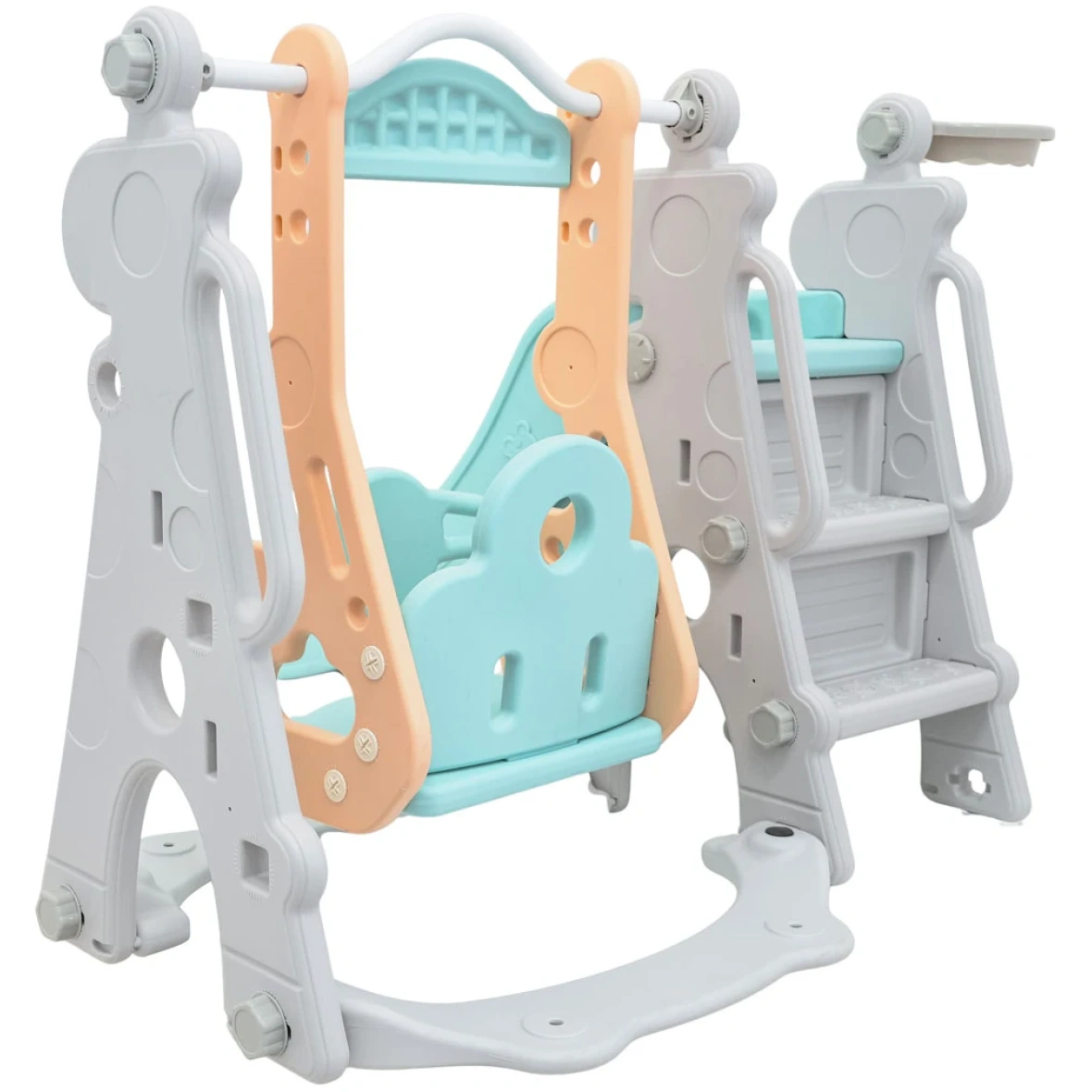 3-ühes komplekt, liumägi, kiik, korvpall lastele alates 1. eluaastast. Kõik komplekti elemendid on valmistatud kvaliteetsest HDPE materjalist, mis on paindlikum ja mehaaniliste kahjustuste suhtes vastupidavam võrreldes teistes sarnastes konstruktsioonides kasutatavate materjalidega. Suured komponendid hõlbustavad kokkupanekut. Komplekt sobib ideaalselt nii õues kui ka siseruumides kasutamiseks.