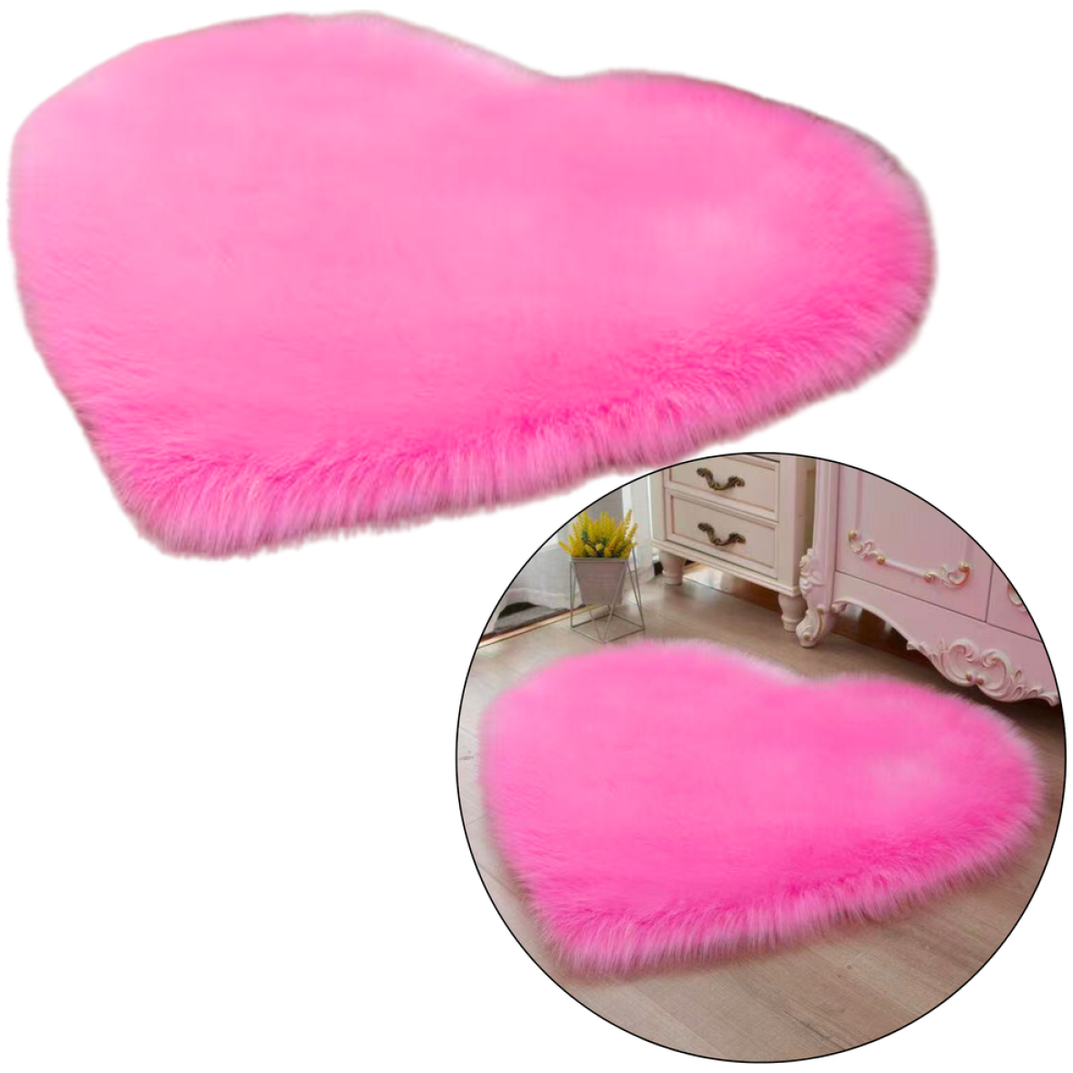 Pehme ja võluv südamekujuline vaip on ideaalne valik inimestele, kes hindavad hubast atmosfääri ja esteetilisi sisustuselemente. Intensiivses roosas värvitoonis ühendab see dekoratiivse funktsiooni praktilise kasutusega. See sobib hästi lastetuppa, magamistuppa, aga ka naiste garderoobi või tualettlaua taha, luues sooja ja sõbraliku atmosfääri.