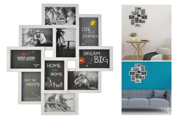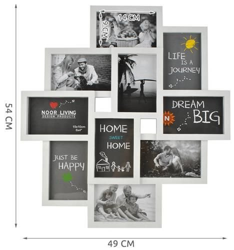 • PRAKTILINE  – raam mahutab kuni 10 fotot maksimaalsete mõõtmetega 10x15cm (väljastpoolt nähtav formaat 9x14cm); tänu kombineeritud elementidele säästame kodus ruumi 10 traditsioonilise raami paigutamiseks; lihtne viis mitme foto vaevata riputamiseks.