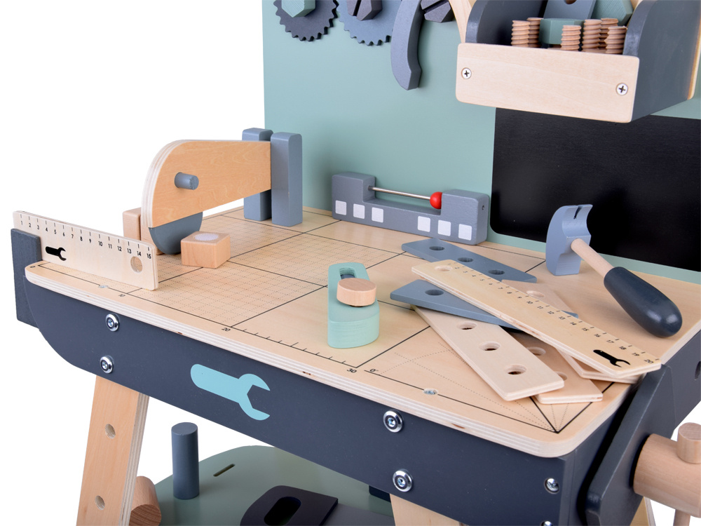 Mitmekülgne tööriistapink pakub tundidepikkust mängu ja arendavaid väljakutseid. See on suurepärane viis lapsele tööriistade ja meisterdamise maailma tutvustamiseks, pakkudes samal ajal ohutut ja lõbusat tegevust.