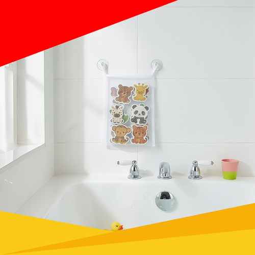 Komplektis olev iminappadega võrkkorraldaja hoiab mänguasjad korras ja võimaldab neil kiiresti kuivada, vältides niiskust ja ebameeldivaid lõhnu.