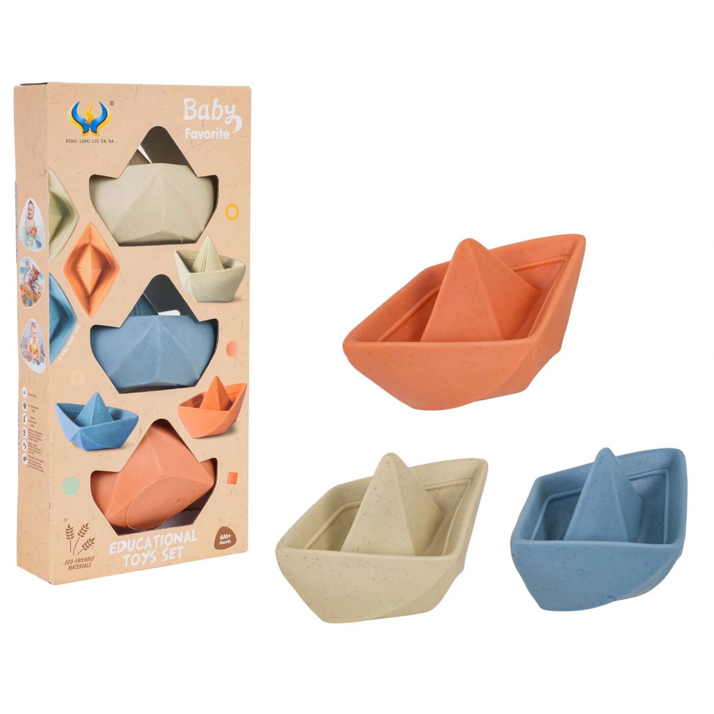 See keskkonnasõbralik kolmest paadist koosnev komplekt sobib ideaalselt lastele vanuses kuus kuud ja vanemad. Valmistatud kõrgeima kvaliteediga materjalidest, on see ohutu ka kõige pisematele lastele. See sobib ideaalselt vanni, veemängudeks või liivakastis mängimiseks.